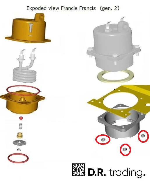 Speciale smalle moertjes voor de flens van de Francis Francis met bronzen boiler.
