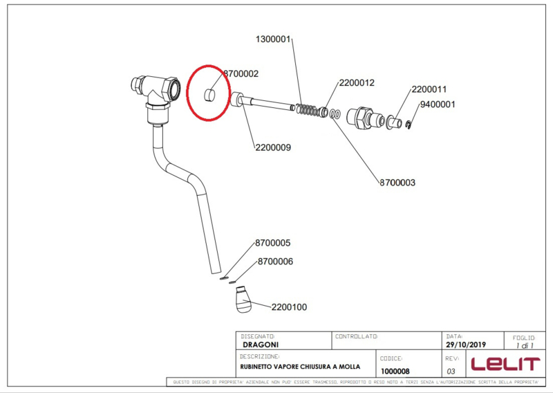 Aflsluiter stoomkraan Lelit Mara/Bianca